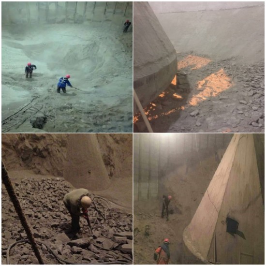 由于水泥庫中的水泥是粉狀物,當(dāng)水泥庫使用一段時(shí)間后,水泥這種粉狀物很容易粘在庫壁上,形成庫壁掛料,這些附著物隨著時(shí)間的增長越來越厚,導(dǎo)致水泥庫的容積變小,即水泥庫的使用效率變低。有時(shí)還會自行脫落成為大小不一的塊狀物或片狀物混在水泥粉中,輕者堵死下料器,重者在庫內(nèi)漏斗上結(jié)拱起蓬,把物料架空無法泄出,造成斷料停產(chǎn),因此需要定期進(jìn)行清理。下面我們跟隨水泥庫清庫公司來給大家一起來了解一下它的流程。