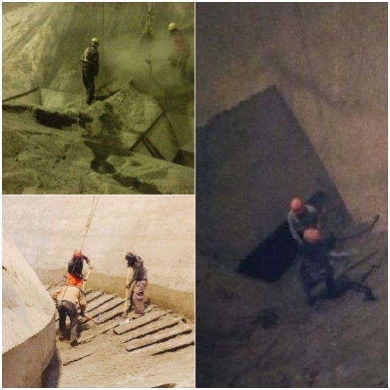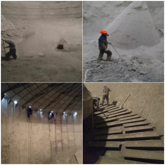 水泥庫清庫施工前施工人員必須把安全防護(hù)措施和自身保護(hù)工作做好,才能進(jìn)庫施工。施工前,需測(cè)試施工人員的保險(xiǎn)繩(承受大于500公斤的重力)。進(jìn)庫施工人員下到庫底,首先做好自身保險(xiǎn)工作,將保險(xiǎn)帶上保險(xiǎn)繩的一端固定好,做好雙保險(xiǎn)后先看清庫內(nèi)積灰分布情況先要把靠近身邊的余料高點(diǎn)由上而下的施工程序進(jìn)行逐步清理。施工人員在庫內(nèi)施工時(shí),從爬梯兩側(cè)清理,顯”V”型,由大向小,先清浮灰及松動(dòng)積料,必須將庫內(nèi)所有余料高點(diǎn)按照由上而下的施工程序進(jìn)行清理,庫內(nèi)余料清理到和庫底門相平時(shí),施工人員才可以從庫底小庫門進(jìn)入施工,直到將庫內(nèi)所有余料全部清理干凈為止。對(duì)于庫內(nèi)板塊,必須采用電鎬或風(fēng)鎬清理,所清結(jié)塊,根據(jù)下料口的情況,需將下料閥拆掉向外排出,在庫內(nèi)施工人員必須一人二保,施工一人監(jiān)護(hù)一人。