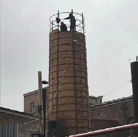 (1)煙囪正常完好,施工人員從煙囪外壁的鋼爬梯上進(jìn)行登攀到煙囪頂部(第1次攀登煙囪鋼爬梯時(shí)、首先帶好安全保險(xiǎn)帶、每個(gè)煙囪鋼爬梯都要進(jìn)行試?yán)蛽u動、確保煙囪鋼爬梯的承受力),施工人員把保險(xiǎn)帶牢固的栓在煙囪鋼爬梯上(栓保險(xiǎn)帶時(shí)、必須要栓2-3個(gè)牢固鋼爬梯上),保險(xiǎn)帶確保牢固后,施工人員在煙囪頂部進(jìn)行人工拆除煙囪。