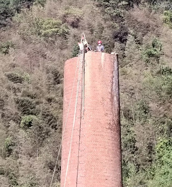 3、煙囪人工拆除前,應(yīng)仔細(xì)檢查爬梯腐蝕程度,不安全的地方進(jìn)行加固,以便施工上下。
