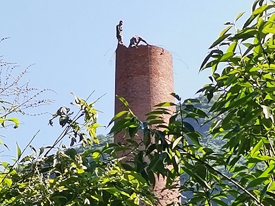 對煙囪爬梯整體檢查,如發(fā)現(xiàn)有腐爛或松動則進行更換,便于施工人員上下施工。